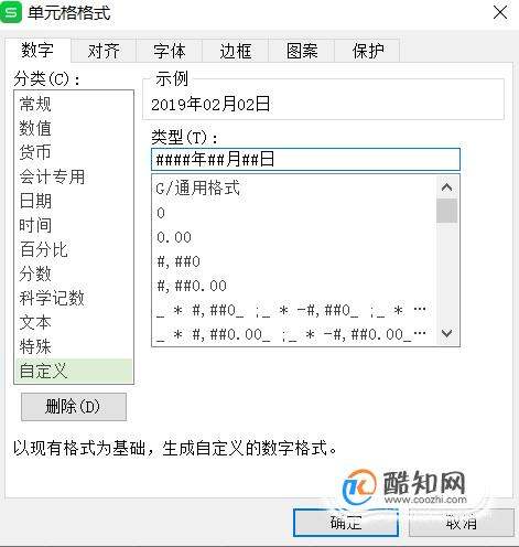在右面类型下方输入框中输入“####年##月##日”,点击“确定”。