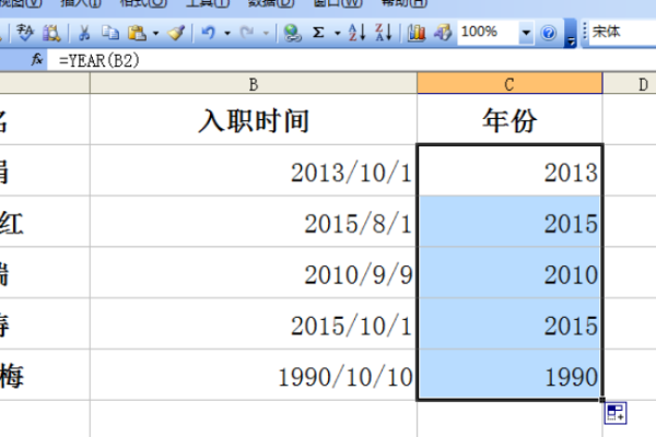 六、最后,将其他单元格因为同上操作,即可提取excel表格中日期中的年份或月份,问题解决。