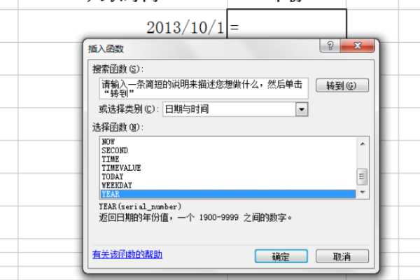 三、然后,在插入函数对话框中选择“year”(年),点击打开。