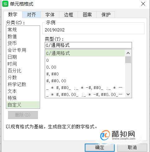 2.打开单元格格式界面后,在分类框中选择“自定义”,在右侧的类型中输入yyyy-mm-dd.在点击确认即可。