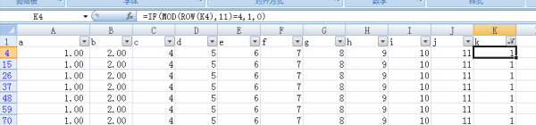 其中如果表1中的首行不是1,只要修改ADDRESS(ROW(C4)/11+行号 即可