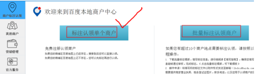 2、如下图所示:点击商户免费标注后会弹出如下窗口,选择左边标注认领单个商户。
