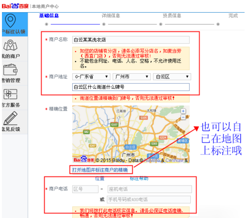 下面讲讲怎么把自己门店添加到地图上,分五步