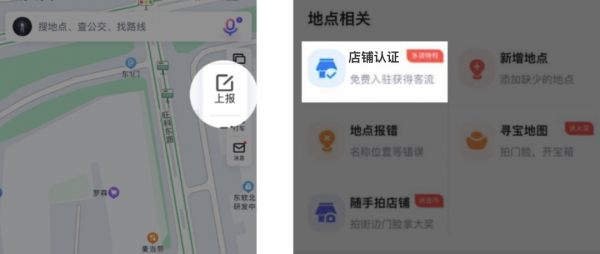 方式二:地图APP首页点击反馈/上报,然后点击商家/店铺认证