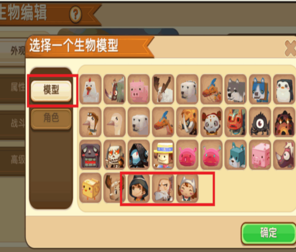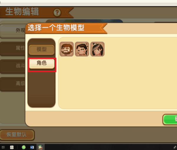 13、点击‘生物’将刚才编辑的人物添加进去。并点击‘确认选择’.