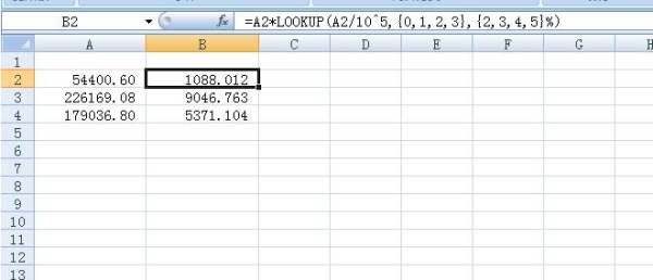 =A2*LOOKUP(A2/10^5,{0,1,2,3},{2,3,4,5}%)