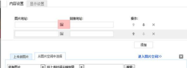 5、指定图片和连接目标。点击下面图片中中的小图片,就可以使用图片空间中的图片。