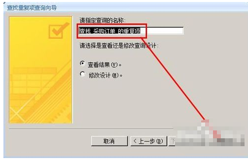 6.在这一步,输入查询的名称,然后点击完成。这样就建立了一个查找重复项的查询了。