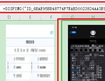 5、随即点击图片---显示选中的是单元格以及上方出现DISPIMG等字样即表示以及嵌入。