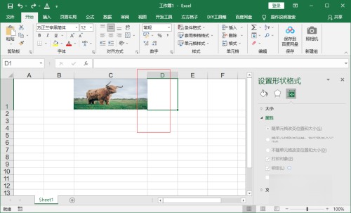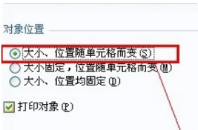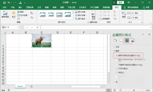 5、左侧到“设置图片格式”,点击“大小与属性”,点击选中“随单元格改变位置和大小”。