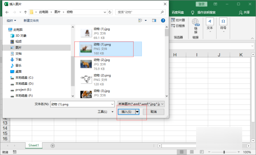 2、打开资源管理器,选中图片,点击“插入”把图片插入到Excel中。