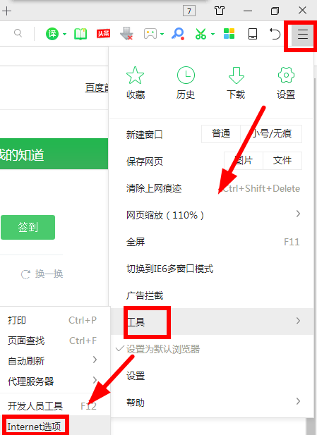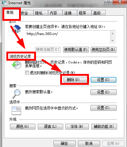 点击工具-Internet选项-常规-浏览器历史记录-删除,进行相应勾选设置即可;