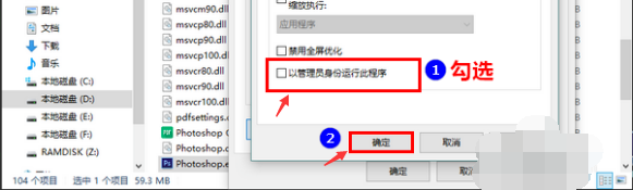 5、在新窗口中勾选“以管理员身份运行此程序”,然后点击“确定”关闭打开的窗口。如下图所示: