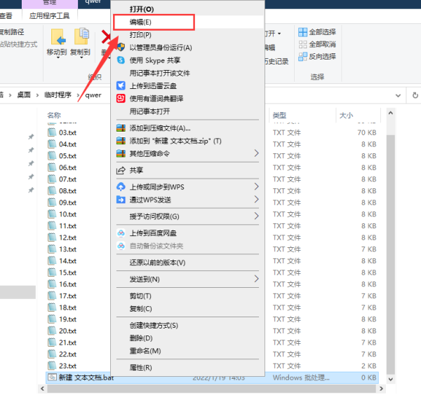 3、右键编辑,将这段指令复制进去点保存,然后双击运行就可以了;