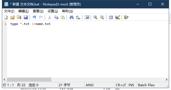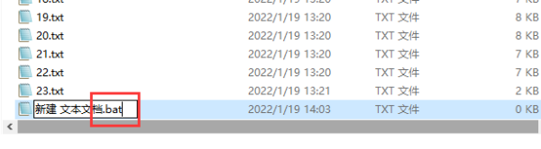 2、在此文件夹下新建文本文档,后缀名改为 .bat;