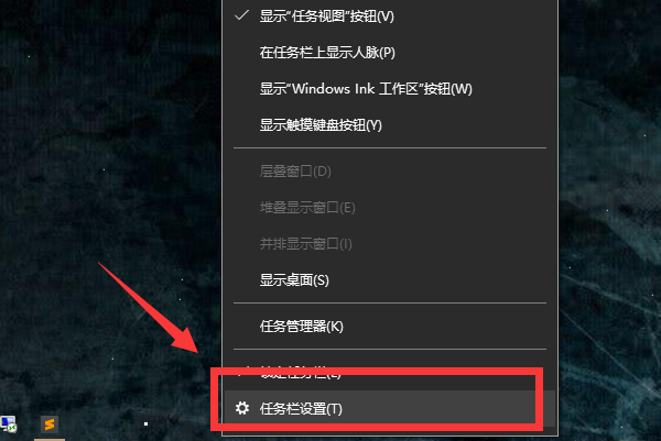 1、右击底部任务栏,然后点击“任务栏设置”按钮进入任务栏设置: