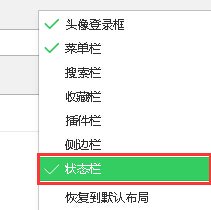 2、点击该按钮之后,下方会跳出一个菜单栏,看看你的状态栏是不是如下图中一样没有勾选: