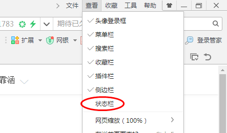 5、一般如果有什么功能在浏览器界面下找不到了,你就可以在右上角的查看里面,看看是不是有什么功能没有勾选,如果觉得太多功能放在界面上不美观,你也可以把功能前面的“√”点掉,那么该功能就不会出现在浏览器的界面了。如下图: