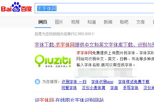 2、在我们保存好图片后,这时我们再打开电脑上的某个浏览器,并进行搜索,这里搜索文字为“求字体网”或“识字体网'都可以。