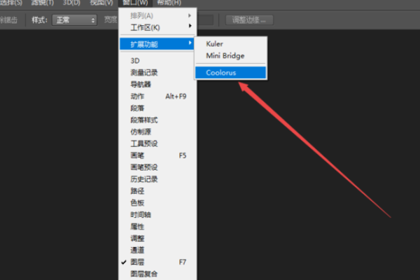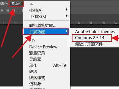 8、打开PS点击【窗口】-【扩展功能】就能看到【Coolorus】插件了。