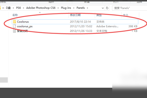 5、转到“我的电脑”,找到PS的安装位置。将“Panels”文件夹放在Adobe Photoshop CS6> Plug-ins文件夹中。