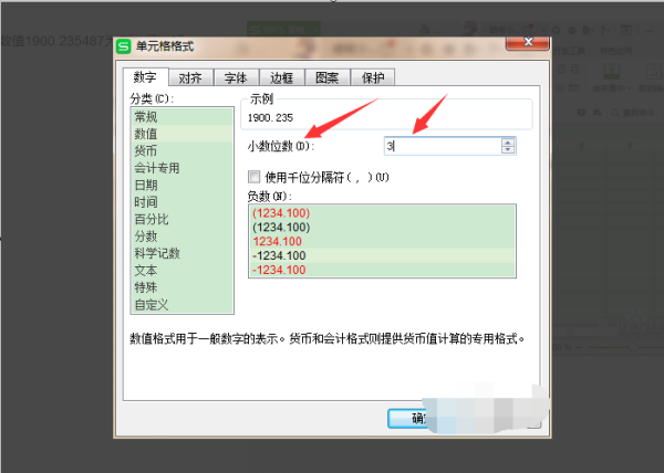 4、小数位数右侧输入需要保留的位数,比如需要保留三位数那么就输入数字3。