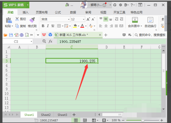 1、打开wps文档,下图中以数值1900.235487为例进行说明。