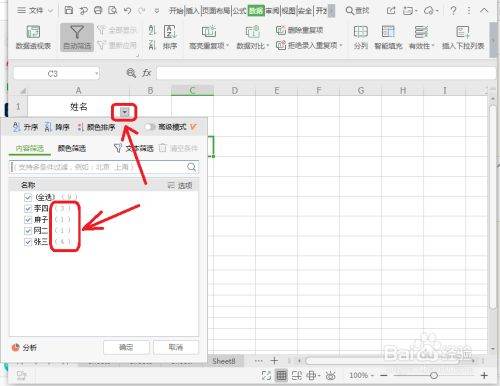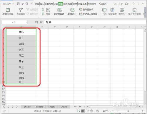 第三步:点击第一个单元格右下角小三角,就能查看姓名统计的数量,如下图所示。