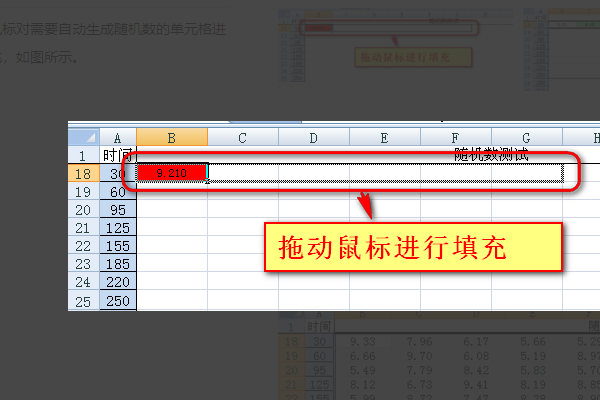 4、然后拖动鼠标对需要自动生成随机数的单元格进行填充。