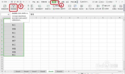 第二步:点击菜单中的“数据”,再点击“自动筛选”,如下图所示。
