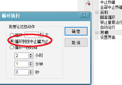 针对脚本本身的无限循环,在“脚本循环”中,选择“循环到按中止键为止”。