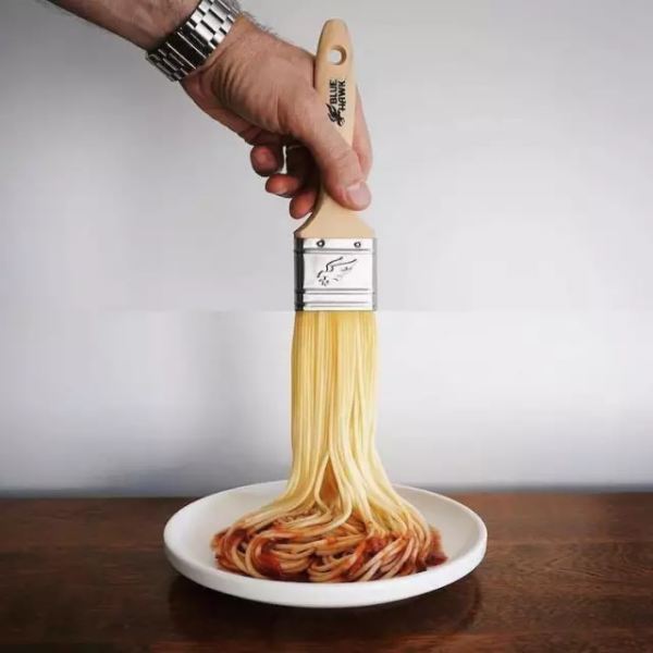 再比如这张国外的笔刷和面条的拼接照片,也是很有借鉴意义的吧,刚好跟我的名字很配: