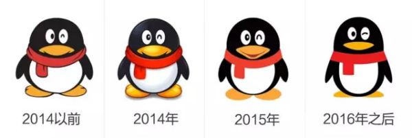 以QQ的logo为例,我们会发现这只企鹅经历了从扁平到质感又到扁平的过程,形态从矮胖肥嘟嘟变成了瘦高的企鹅少年,表情线条也更加简练显得沉稳,色彩也看起来更干净,这些细微的调整,一方面预示着他在跟着受众群体一起成长,而且更加国际化了,这是业务发展和形势需要。