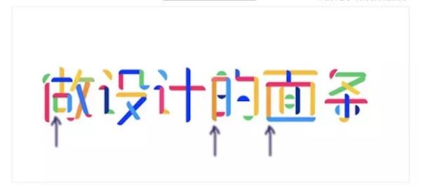 所谓字体变形法,就是在原有品牌名称或企业名称的基础上,做一些效果或变形处理,最好是能结合这个品牌的一些个性或性质来发挥创意,以“做设计的面条”为例,我们可以是体现“设计”这个方向去发挥,给大家看一下我们的一位面粉在设计练习中为做设计的面条做的字体变形作品,差不多就是这么些意思: