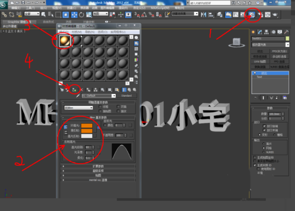 5、鼠标左键点击【材质编辑器】按钮,绘图面板弹出【材质编辑器对话框】。在设置好材质参数后,给自己建的模型附上想要的材质。