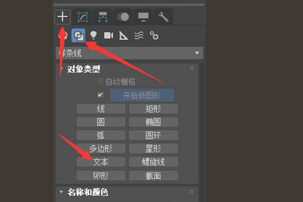 1、首先打开3Dmax软件,鼠标点击【图形】-【文本】,然后在软件做图区域点击鼠标左键,得到3dMax文本图案。