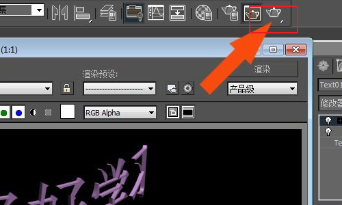 7、最后,在透视图中,鼠标左键单击【渲染】按钮,可以看到,通过创建文本图形,并挤出和弯曲,弯曲文字模型就制作好了。