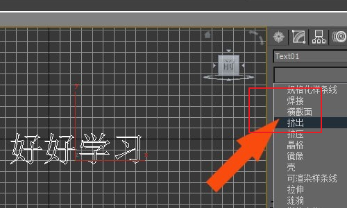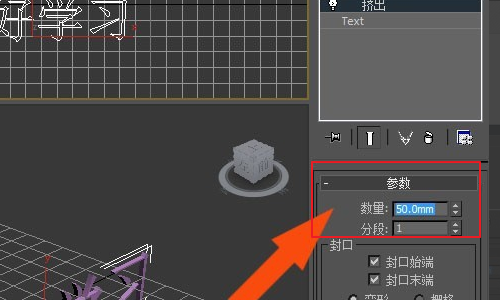 4、 接着,切换到【透视图】中,在挤出参数的面板上,输入挤出的参数。