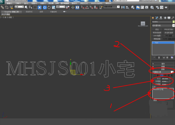 1、首先打开需要编辑的3dmax文件,选中文字。