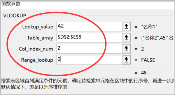 3、然后针对A2单元格进行匹配D列到E列的数据,返回值填入“2”,转换成公式为:=VLOOKUP(A2,$D$2:$E$8,2,0)。