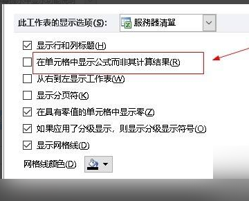 4、最后在打开的高级窗口中,勾选在单元格中显示公式而非其计算结果选项,如下图所示就完成了。
