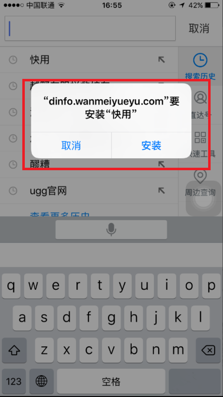 四、软件下载好完成之后,系统将会自动弹出一个提示栏目【XX要安装“快用”】,点击安装键即可。