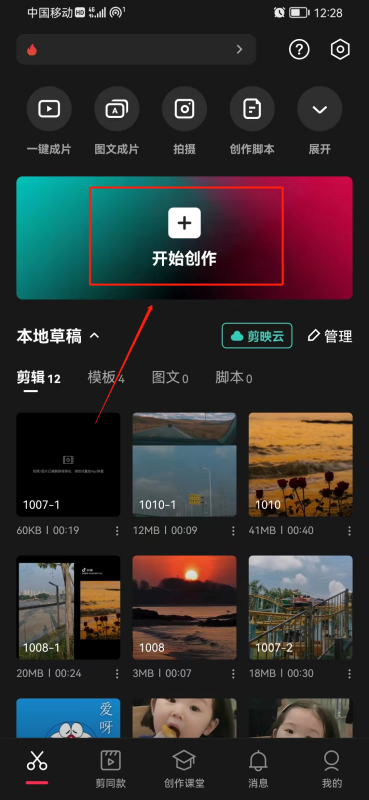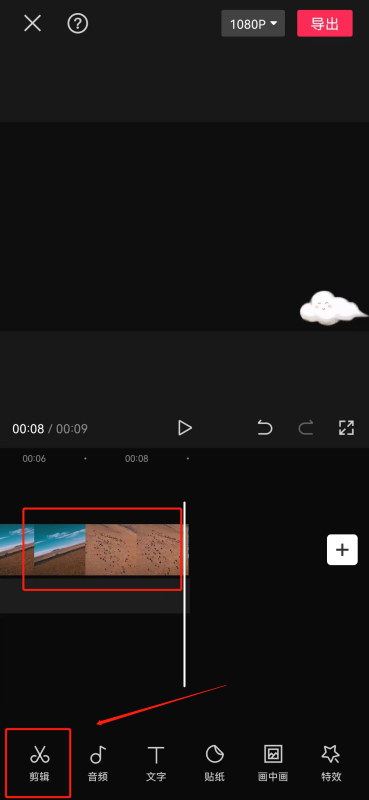 4、在视频最后面这里显示黑屏,可以点击左下角的【剪辑】,或者直接点击中间位置的内容,如下图所示;