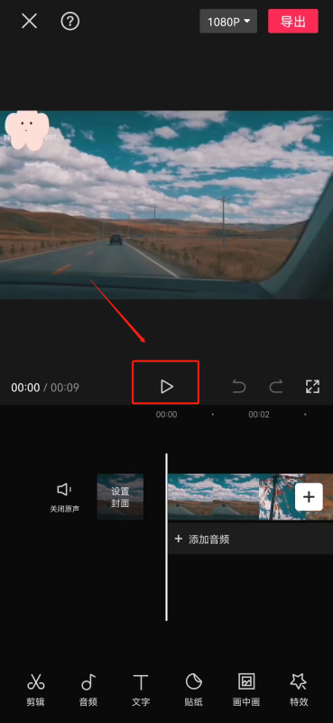 3、进入剪辑页面,可以点击播放键,或者滑动视频内容到视频的最后面;