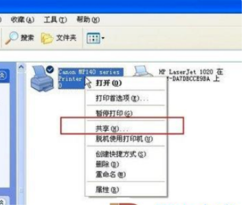 2、进入“打印机和传真”窗口后,右键单击需要共享的打印机,然后选择“共享”;