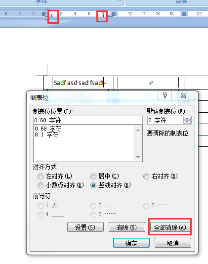 可能是“竖线对齐式制表符”,删除方法:选中相关单元格,然后在水平标尺上双击制表位(小竖线标记),调出“制表位”对话框,按“全部清除”按钮进行删除。