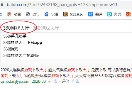 2、点击搜索栏输入360游戏大厅。