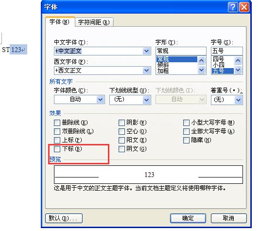 下角标那个地方,你就正常打出来 如 ST123 ,然后选择需要是下标的内容---- 右击 -- 字体- 下标。