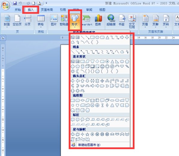 选择你需要的形状画出来, 之后 选中图形 -- 右击 ---- 设置自选图形格式, 可以改变图形的一些属性。