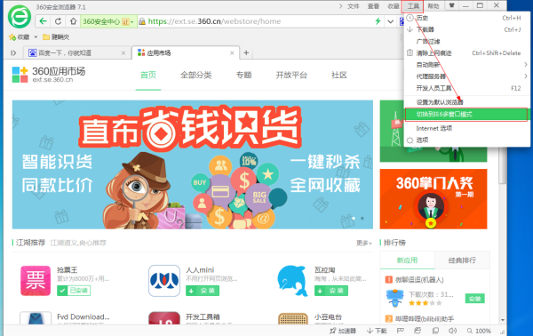 360浏览器新标签页是不能设置关闭的,如果不想要新标签页,那么可以设置成多窗口浏览。